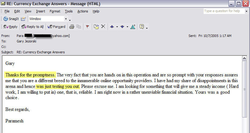 Real Emails from Real Currency Exchange Customers